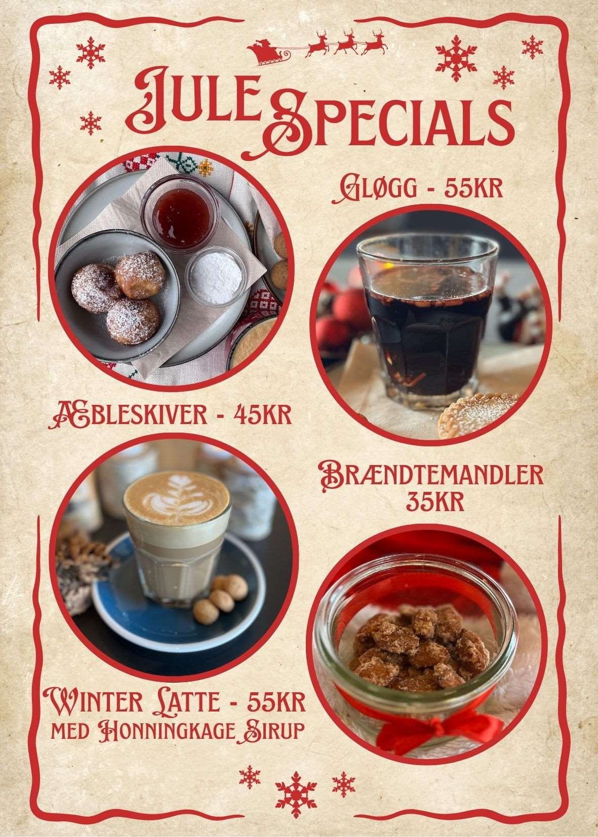 Surdejsbolle med specialost/gammel knas + appelsin juice/æblemost + valgfri kaffe. Prisen afhænger af valg af kaffetype. Glutenfri bolle +10 kr.