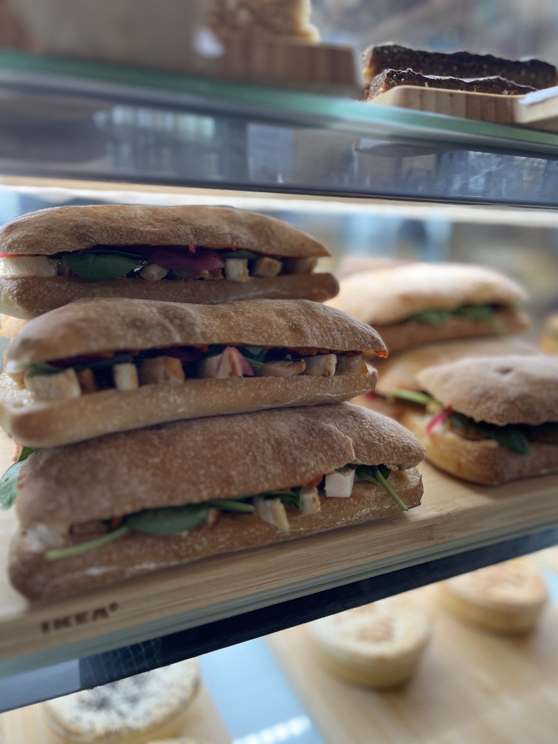 Økologisk kylling, babyspinat, håndlavet syltet rødløg, kimchi-mayo, ajvar (halal)